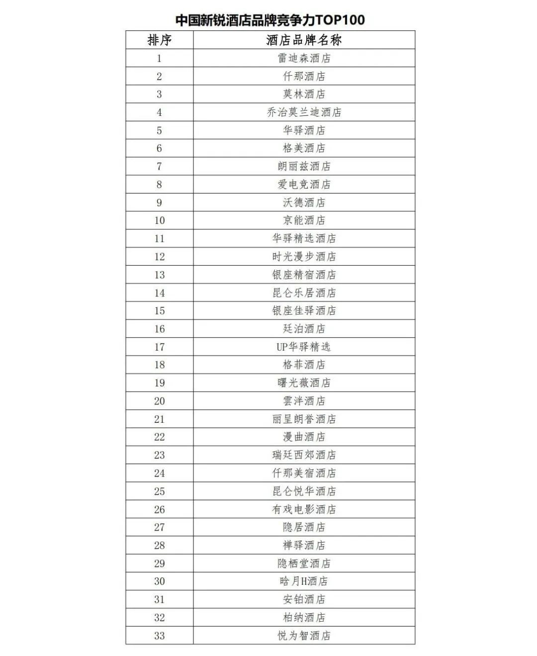 在文化節期間,還發布了“中國新銳酒店品牌競爭力 TOP100”。